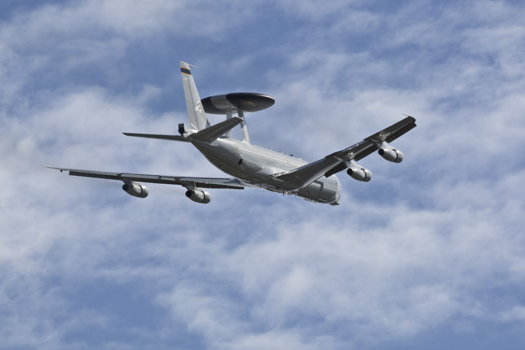 Previous Image Next Image AWACS Surveillance Aircraft Airforce AWACS Airborne Radar Surveillance Aircraft Flying overhead