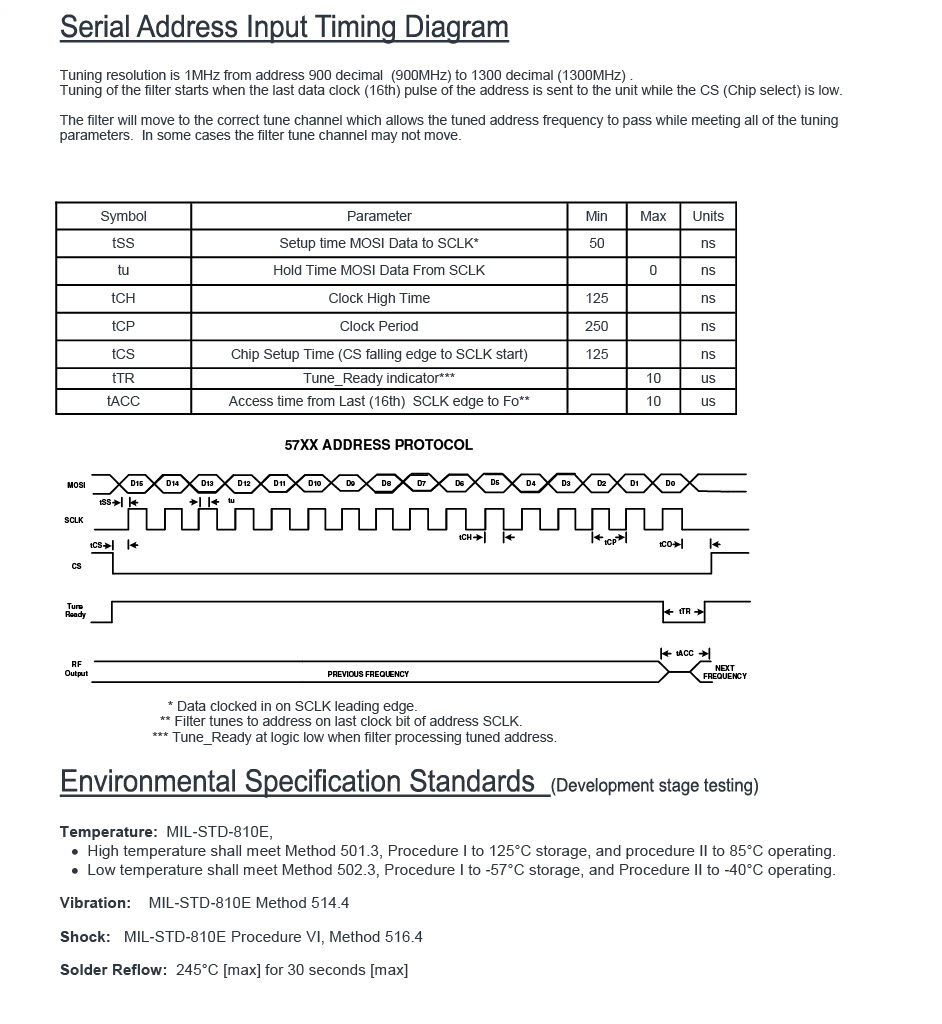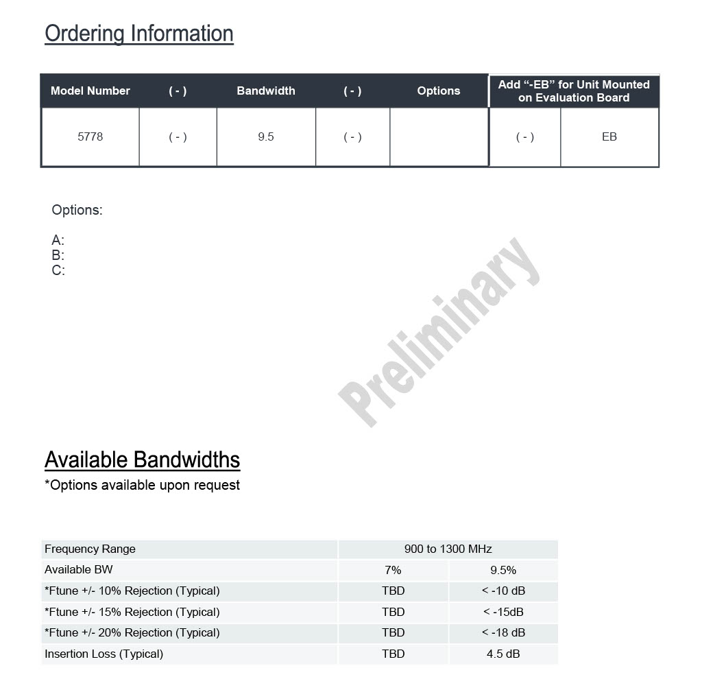 The filter is a single band tunable filter offering the advantage of small size with a control system comparable to larger size filters. The 5778-9.5 900-1300MHz filter has 2 watt power handling capability.